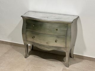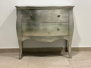 Comoda de madera dos cajones de gran capacidad. Plateada. Muy buen estado.