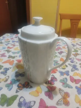 Tetera de porcelana con un diseño delicado y elegante. Perfecta para servir tus bebidas calientes favoritas. - Diseño con motivos de mariposas. - Tapa a juego con el cuerpo de la tetera. - Asa ergonómica para un agarre cómodo.