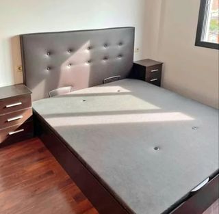 Se vende cómoda con espejo, mesitas de noche, ambos con placa de mármol. Y cabecero de madera.