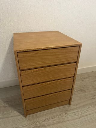Cajonera de madera con un diseño moderno y elegante. - Cuatro cajones amplios. - Acabado natural de la madera.