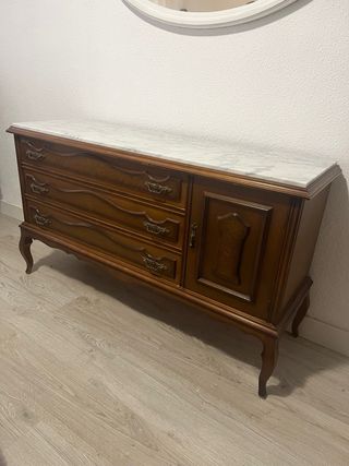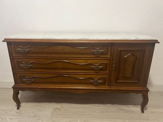 Cómoda de madera con tapa de mármol