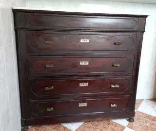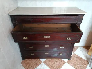 Cómoda antigua de madera de caoba con sobre de mármol.
