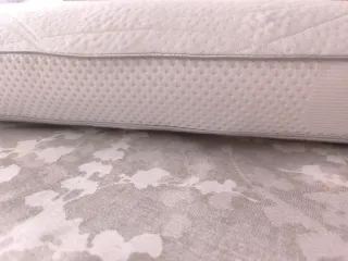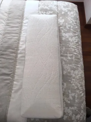 Almohada viscoelástica Tencel con un diseño moderno. - Tejido exterior de poliéster. - Color beige y blanco. La medida es 105. Está usada una vez y la vendo porque pensaba que encajaba bien de largo en mi cama y sobresale y no me gusta. Es muy cómoda.