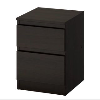2 unidades: 1 por 18€// 2 por 30€ Cómoda Kullen con dos cajones, ideal para organizar tus pertenencias. Su diseño moderno se adapta a cualquier habitación. - Dos cajones amplios. - Acabado en madera oscura.