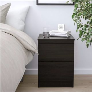 Cómoda Kullen 2 cajones madera oscura.