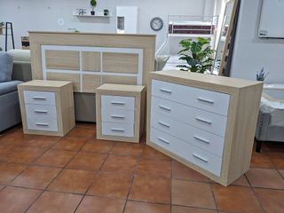 PACK DE OFERTA DORMITORIO!! INCLUYE: - ARMARIO DE TRES PUERTAS CON CAJÓN - CABECERO - 2 MESITAS DE NOCHE DE 2 CAJONES - COMODA * PRODUCTOS NUEVOS * GARANTIA 3 AÑOS * PAGO CONTRA REMBOLSO * FINANCIAMIENTO