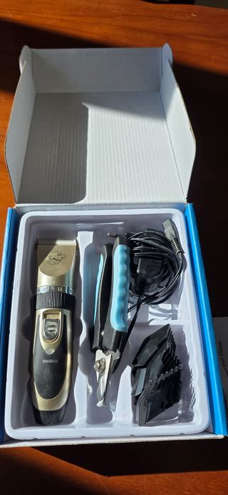 Kit profesional de cortapelos para mascotas, diseñado para un uso cómodo y eficiente. Apenas usado 4 veces, está perfecto. - Cuchilla de cerámica. - Motor potente y silencioso. - Baterías de alta durabilidad. - Bajo nivel de ruido. - Incluye corta uñas de regalo.