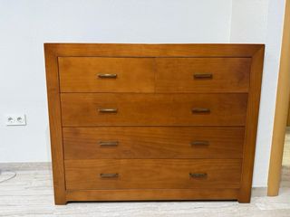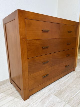 Cómoda de madera maciza de castaño, perfecta para dormitorio o salón. Cajones amplios y resistentes. Estado: muy bueno, uso mínimo Transporte fácil con vehículo mediano Precio: 200 € (negociable)