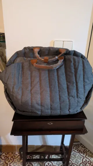Bolso de viaje acolchado con asas de cuero. Cómodo para transportar a la mascota y disfrutar del viaje - Diseño acolchado vertical. - Asas de cuero marrón. Ver medidas en las fotos