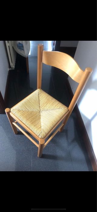 Silla de comedor con un diseño clásico y materiales naturales. - Estructura de madera clara. - Asiento tejido de ratán. - Respaldo curvo para mayor comodidad.