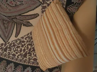 Sofá cama cómodo y espacioso, ideal para tu salón. El tapizado esta algo sucio pero limpiándose queda perfecto - Tapizado en tela de ante. - Color principal beige. - Cojín multicolor con diseño de donut.