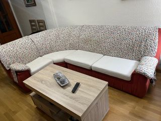 Vendo sofá rinconera en buen estado, muy cómodo y espacioso. Ideal para salón grande o para familias. El sofá está bien cuidado y se ha usado con normalidad. Tiene una pequeña raja en la parte trasera, que no se ve de frente y no afecta en absoluto a su uso, solo es estética (se puede ver en la última foto). Se vende por cambio de mobiliario. 📍 Recogida en mano. 💬 Cualquier duda, sin problema.