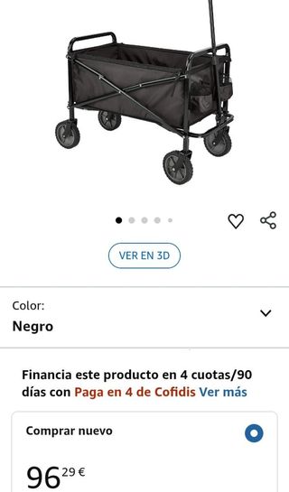 Dimensiones del producto50,8f. x 103,9an. x 70,1al. centímetros MarcaAmazon Basics MaterialAcero aleado ColorNegro Función especialPlegable Número de estantes1 La carreta plegable para jardín exterior mantiene las herramientas de jardinería cómodamente accesibles cuando se trabaja en el patio También funciona bien para salidas en familia, distribución de suministros o llevar a una mascota con problemas de movilidad Tubo de acero resistente y extensible con un mango de plástico de primera calidad para una sujeción cómoda y para maniobrar fácilmente Mecanismo simple de plegado/desplegado; pliega la carreta hacia abajo y deslízala en l
