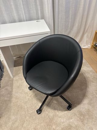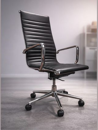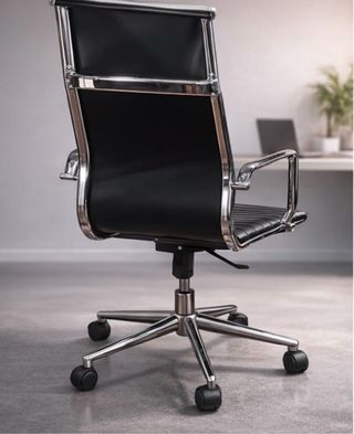 Vendo silla de oficina/estudio de diseño elegante y atemporal, tapizada en negro con estructura cromada. Muy cómoda y con presencia “executive”, ideal para despacho, home office, sala de reuniones o estudio. 🔹 Altura regulable 🔹 Base metálica cromada 🔹 Ruedas suaves (se mueve con facilidad) 🔹 Reposabrazos integrados 🔹 Estética moderna tipo silla ejecutiva premium 📌 Estado: usada, en buen estado general. Presenta ligeras señales de uso en una esquina del asiento (se aprecia en fotos), sin afectar en absoluto al funcionamiento.