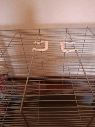 Jaula espaciosa para roedores, con varios niveles para mayor comodidad. - Bandeja de plástico resistente. - Estructura de alambre. Jaula de 100e con dos plataformas, piertas en perfecto estado y enganches. Único defecto la cochinada que hay en el lado inferior derecho, se puede quitar frotando con una esponja pero me da pereza así que por eso la dejo tirada de precio