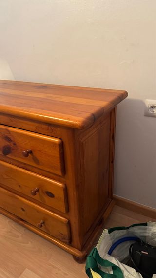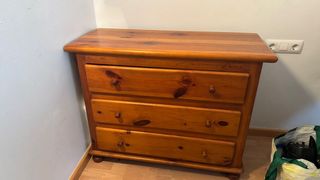 Mueble de madera con tres cajones. Ideal para almacenar ropa u otros objetos. - Diseño clásico y funcional. - Tiradores redondos. - Patas de madera.
