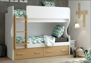 Litera juvenil con excelente acabado, estabilidad y diseño, para colchones de 90×190 (no incluidos). La oferta incluye escalera (de madera o metal) , baranda y trasera. Opción de cama de arrastre inferior en lugar de cajones (+30€). Somier superior no necesario, somier inferior no incluido (50€). Diferentes opciones de color. Puede financiar esta compra en comodos plazos si lo prefiere. Transporte y montaje opcional 95€ (hasta 15 km).