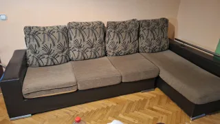 Chaiselongue con un diseño moderno y cómodo. Precio negociable, tiene algunos desgastes por el uso, de ahí el precio. Regalo funda - Tapicería de tela y polipiel. - Tonos marrones y multicolor. Medidas Ancho total 283cm Fondo 93 - 158 Alto 97