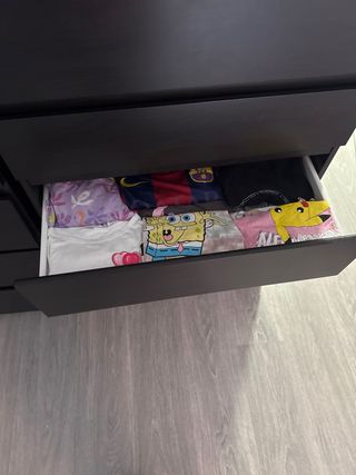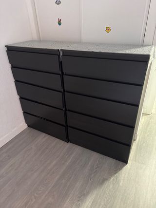 Se venden dos cómodas grandes de cinco cajones cada una. Son de color negro y tienen un acabado moderno.cada uno 65€ - Cada cómoda tiene 5 cajones amplios. - Diseño elegante y funcional.
