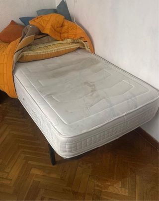 Se vende somier y colchón. - El colchón tiene manchas del tiempo pero sigue siendo cómodo. - Estructura de metal y tapizado de tela.