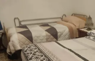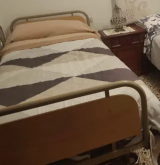 Cama articulada con un colchón prácticamente nuevo, lista para ofrecer comodidad. - Estructura de metal. - Tapicería de tela.