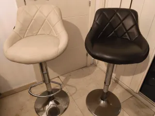 Conjunto de dos bancos giratorios con altura regulable. Son ideales para barras o mesas altas. - Asientos cómodos. - Base estable.