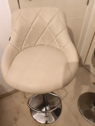 Moderno y elegante juego de 3 taburetes regulables de polipiel con base cromada, perfectos para dar un toque actual a tu cocina, isla o barra. Muy cómodos y en buen estado. Tapicería impecable; las bases tienen pequeños puntos de óxido por uso normal. 2 marrones y 1 beige. 30 € cada uno. - Asientos con acabado acolchado y diseño capitoné. - Base redonda y estable. - Altura regulable para mayor comodidad.