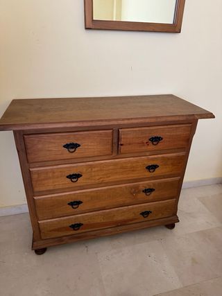 Cómoda de madera con cajones más espejo a juego