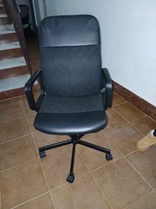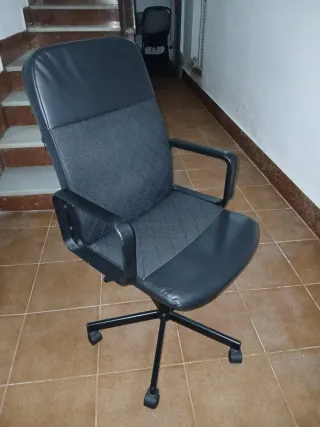 Silla de oficina de ikea con un diseño moderno y cómodo. - Asiento y respaldo acolchados. - Base con ruedas para fácil movilidad. - Reposabrazos integrados.