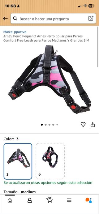 Arnés para perro con diseño de camuflaje en rosa y gris. Es cómodo y ajustable. - Diseño de camuflaje. - Hebillas de liberación rápida.