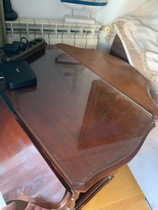 Mueble tocador antiguo con espejo. - Acabado en madera veteada. - Amplio espejo octogonal. - Cajones y compartimentos de almacenamiento. Entrega en Madrid.