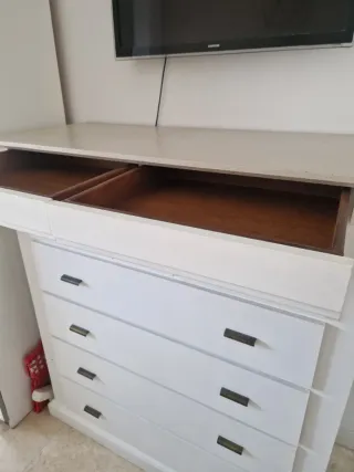 Cómoda blanca de 3 cajones en buen estado Vendo cómoda de color blanco con 3 cajones amplios, ideal para dormitorio o cualquier estancia. Tiene un diseño sencillo y moderno que combina con todo tipo de decoración. ✔️ Cajones espaciosos y funcionales ✔️ Estructura robusta ✔️ Tiradores en color oscuro ✔️ Fácil de limpiar 🔎 Estado: Buen estado general, con alguna pequeña marca superficial en la parte superior (ver foto), que no afecta a su uso. 📏 Perfecta para guardar ropa, accesorios o lo que necesites. 💰 Precio negociable 📍 Recogida en persona