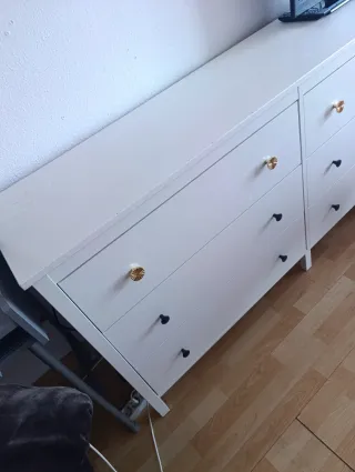 Magnifica Cómoda de 6 cajones de IKEA. Un mueble práctico y elegante para tu hogar. Muy espaciosa. "Tiene Un desperfecto en la parte de arriba;." Mirar las fotos - Diseño de seis cajones amplios. - Tiradores negros y dorados - Patas finas.