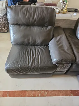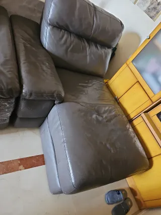 Sofá de piel muy confortable, eléctrico tiene arañazos de mi gato por demas todo bien y muy buena calidad - Tapicería de piel. - Color marrón/gris.