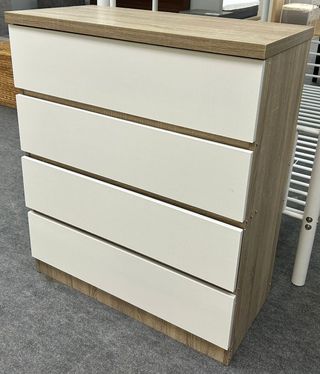 Cómoda 4 cajones madera y blanco