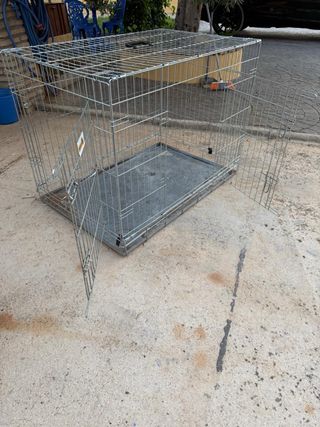 Preciosa jaula para perros, casi sin usar. Ideal para transportar o tener a tu mascota segura. - Medidas amplias y cómodas. - Estructura metálica resistente. - Incluye bandeja extraíble.