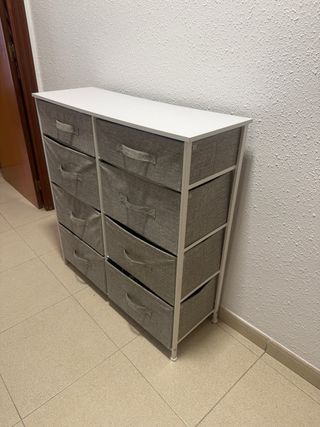 Mueble organizador con ocho cajones. - Estructura de metal. - Cajones de tela gris. - Parte superior de madera Muy cómoda para guardar lo que necesites e ideal por que no ocupa mucho espacio. (No hago envíos)