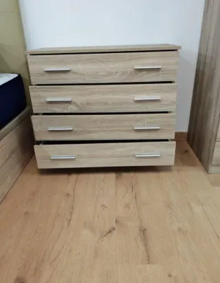 Hacemos envío y montaje / Paga al recibir 📲660 * 385 * 837 Super Oferta! Cómoda de 4 cajones nueva+ 2 mesitas de noche de muy buena calidad. Disponible también en blanco. Medidas: Comoda: 90cm x 78cm alto x 36cm fondo. Mesitas: 45cm x 62cm alto x 31cm de fondo.