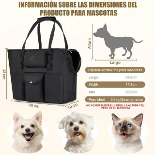 Práctica bolsa de transporte para perros de la marca SlowTon. Ideal para llevar a tu mascota contigo de forma segura y cómoda. - Diseño espacioso con múltiples bolsillos exteriores. - Asas resistentes para un agarre firme. - Aberturas para ventilación y visibilidad de la mascota. SlowTon Transportin para Perros - Bolsa Transporte Transpirable para Mascotas Portátil para Mascotas con Correa Seguridad, Ideal para Perros y Gatos de hasta 5.5 kg para Paseos Viajes 40CM*19CM*33CM