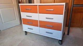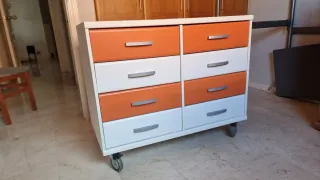 Cómoda pequeña 8 cajones naranja y blanco