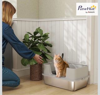 Arenero para gatos de la marca PawHut, diseñado para ofrecer comodidad y privacidad a tu mascota. - Color gris y plateado. - Materiales resistentes. - Diseño moderno. Ref: d31-145v00gy