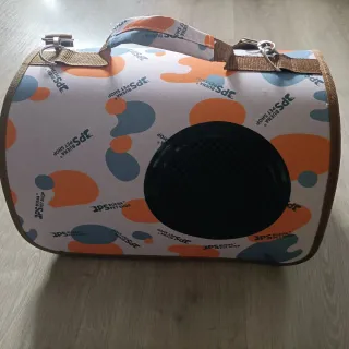 Transportín para mascotas con un diseño moderno y cómodo. - Asas y correa de transporte. - Malla de ventilación en la parte inferior.