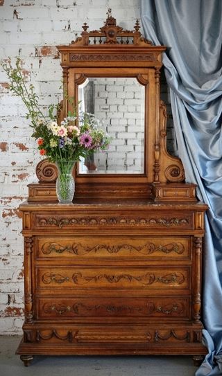 Cómoda con espejo realizada en Roble , siglo XIX.