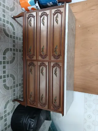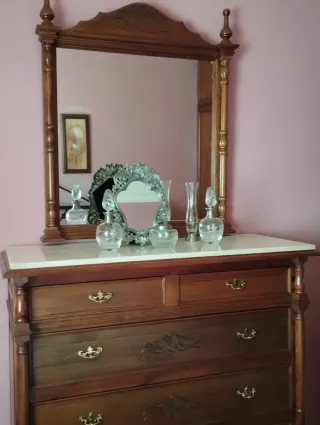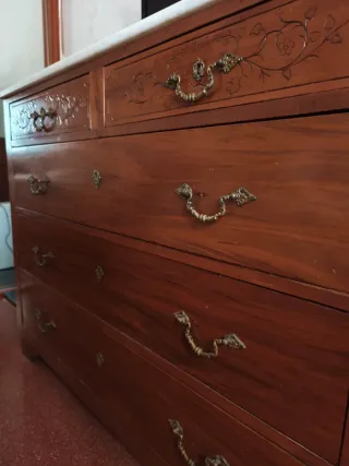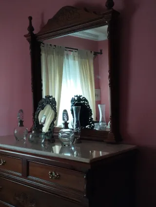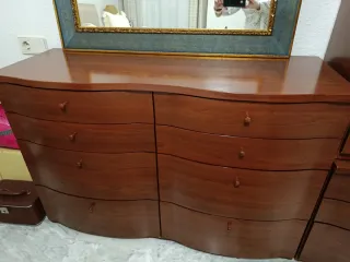 Vendo cómoda de alta calidad con espejo a juego, fabricada en madera maciza y con encimera de mármol. Mueble elegante, sólido y muy bien conservado. 📏 Medidas de la cómoda: • Ancho: 1,15 m • Alto: 0,77 m 🪞 Medida del espejo: • Alto: 1,10 m 🗄️ Cajones amplios y funcionales. ✨ Detalles decorativos y tiradores metálicos originales. 📌 Mueble robusto y pesado, de los de antes, hecho para durar. 📸 Se vende el conjunto completo (cómoda + espejo).