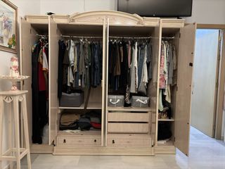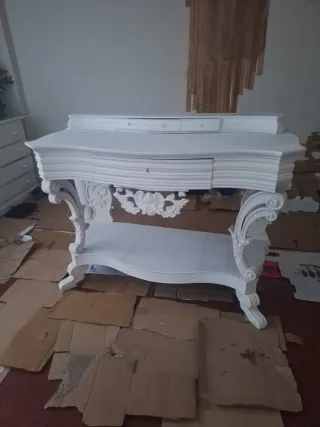 Dormitorio de madera maciza rústico-moderno – Calidad excepcional Se vende precioso dormitorio completo de madera maciza, de gran tamaño y en estado impecable. Son muebles de madera antigua, lo que garantiza una calidad, resistencia y durabilidad muy superiores a los muebles actuales. El conjunto incluye: Cabecero Cómoda amplia Dos mesitas de noche Espejo a juego, colocado sobre la cómoda Acabado en blanco con tonalidades y reflejos en grises, combinando a la perfección un estilo rústico y moderno, ideal tanto para ambientes clásicos como contemporáneos. ✨ Muy bien cuidado, sin golpes ni desperfectos ✨ Madera de alta calidad y excel