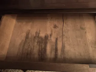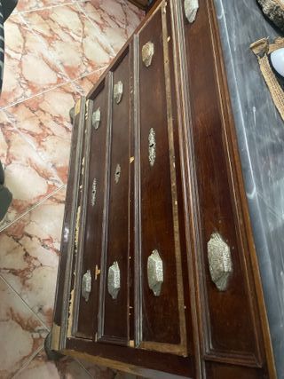 Mueble de madera muy antiguo - Tapa superior de cristal. - Tiradores metálicos. - Cajones amplios.
