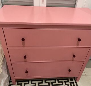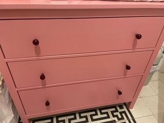 comoda hemnes de ikea, de madera pintada en rosa. en perfecto estado.los tiradores NO estan incluidos. serian los tiradores originales de esta comoda de ikea