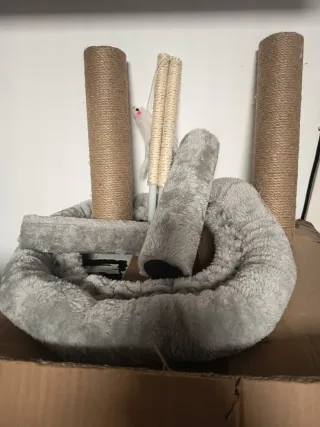 Casa rascador de gatos, nueva sin estrenar, color gris, tela de pelito cómoda y cálida.