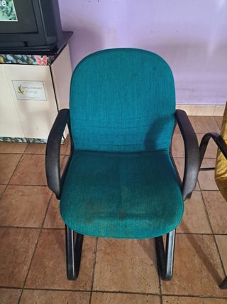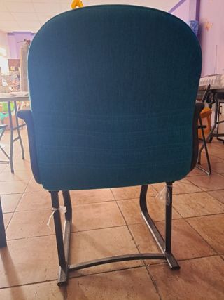 Hay dos unidades disponibles, precio por unidad Sillón de oficina con un diseño moderno y cómodo. - Tapizado en tela de color verde azulado. - Brazos y estructura en color negro. - Base de plástico resistente.