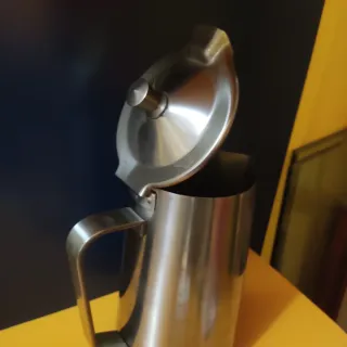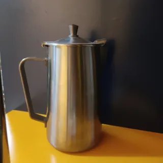 Elegante jarra de acero inoxidable, perfecta para servir leche u otras bebidas. - Diseño moderno y funcional. - Asa ergonómica para un agarre cómodo. - Tapa con pico vertedor.